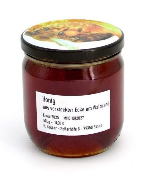 Dieser Honig stammt aus einer kleinen stationären Imkerei, die als Hobby betrieben wird, die Bienen stehen an einem Schwarzwaldhang direkt am Waldrand. So entsteht eine Mischung aus Wald- und Blütenhonig, die einzigartig ist.