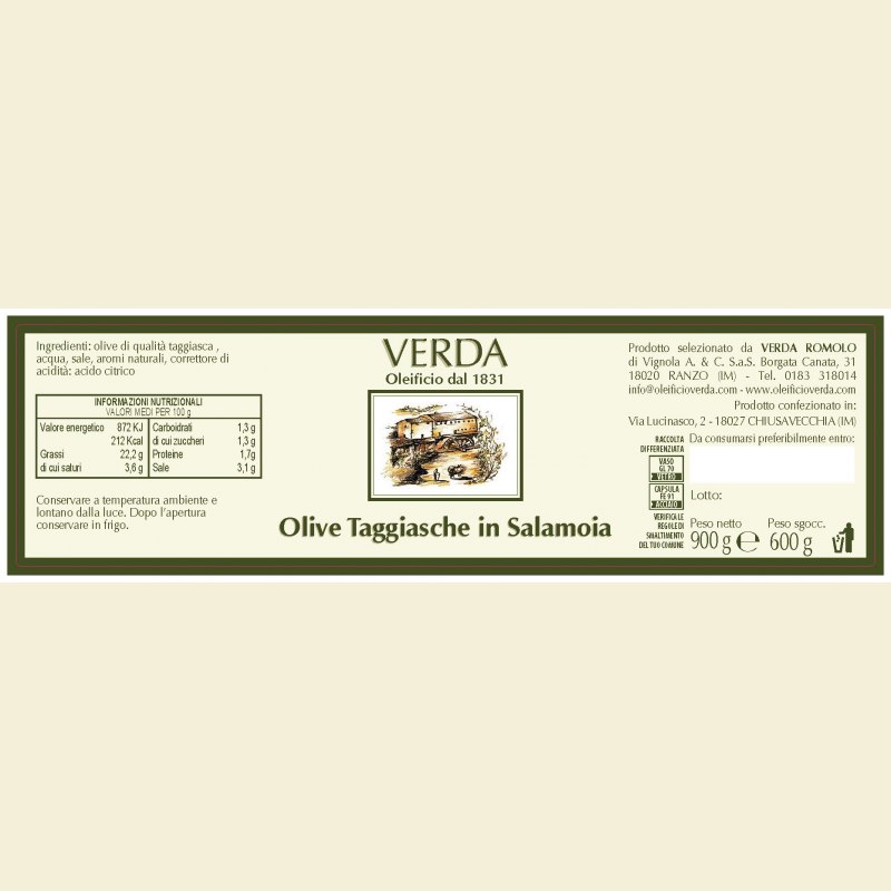 Die kleinen Taggiasca Oliven sind eine Rarität, nicht jedes Jahr können wir sie erhalten. Sie sind mit Stein in Lake eingelegt, so bleiben sie schön knackig und mild.